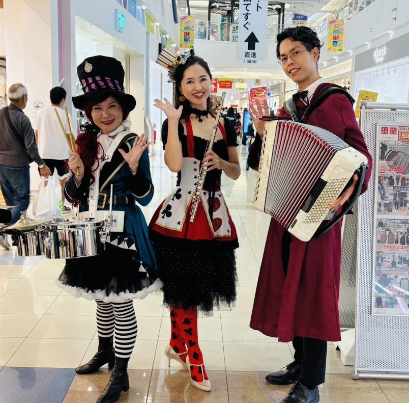 館内を30分ほど生演奏(フルートとアコーディオンとパーカッション)に合わせて楽しくパレードし、「Trick or Treat」とみんなで声かけをしました!